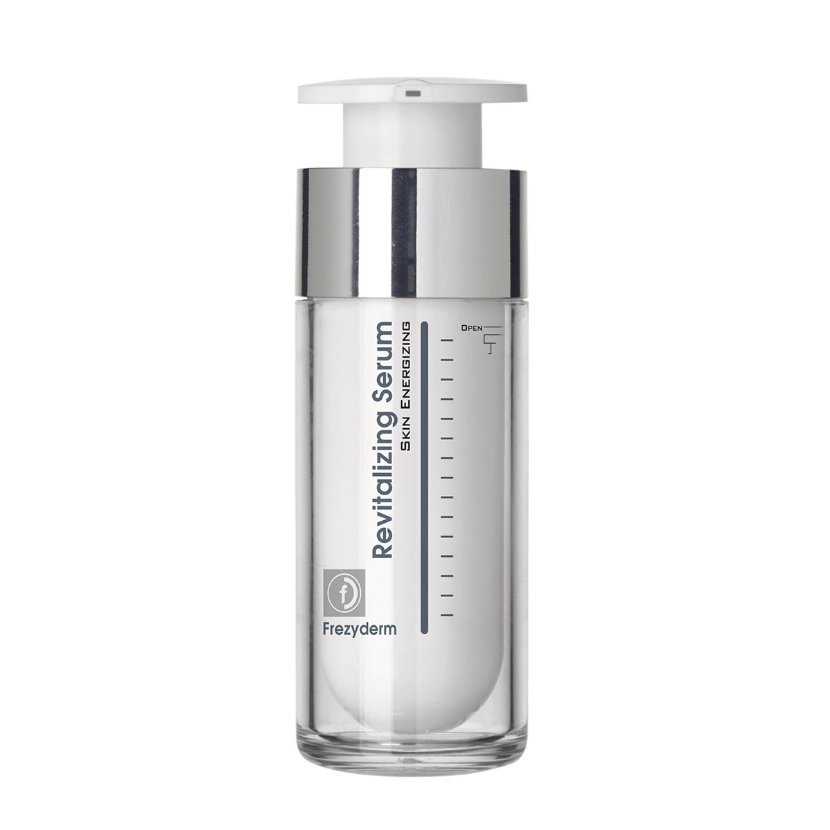 Frezyderm Revitalizing Serum revitalizacijski serum za obraz učinkuje proti staranju in za revitalizacijo. Če nanesete nekaj kapljic na obraz in vrat, vaša koža takoj postane mehkejša in gladka. Aktivne sestavine formule dajejo kožnim celicam kisik, povečajo elastičnost kože in zmanjšajo videz gub. Prav tako povečujejo učinek dnevne ali nočne kreme.