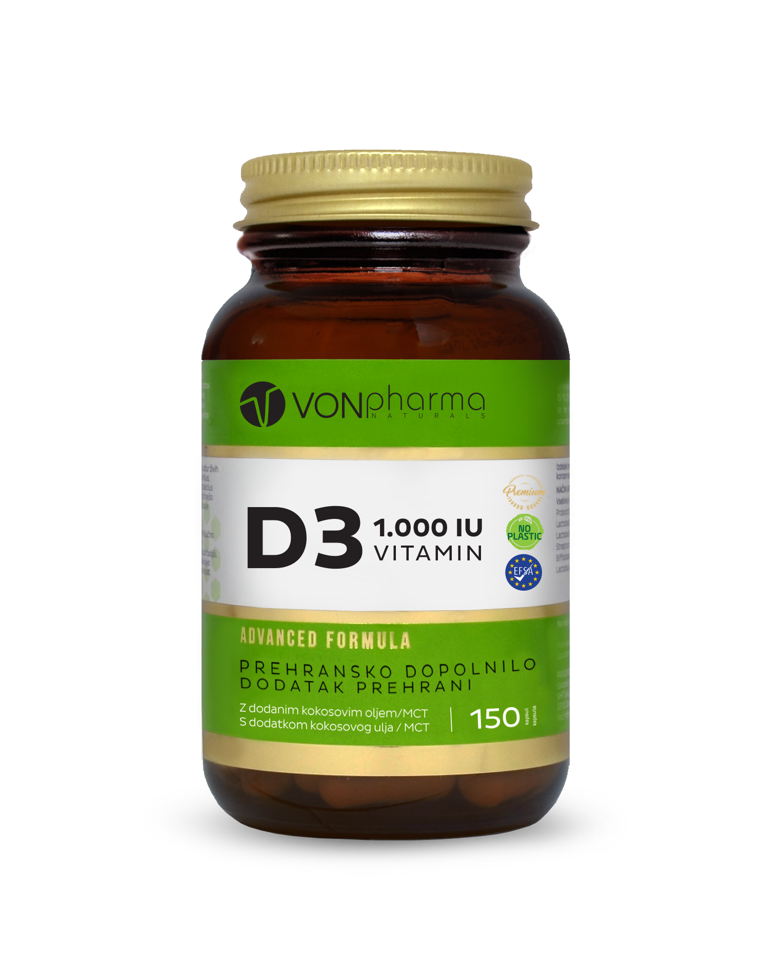 VONpharma Vitamin D3 1.000 I.E. je prehransko dopolnilo v obliki kapsul, namenjeno podpori imunskemu sistemu, kostem in mišicam.